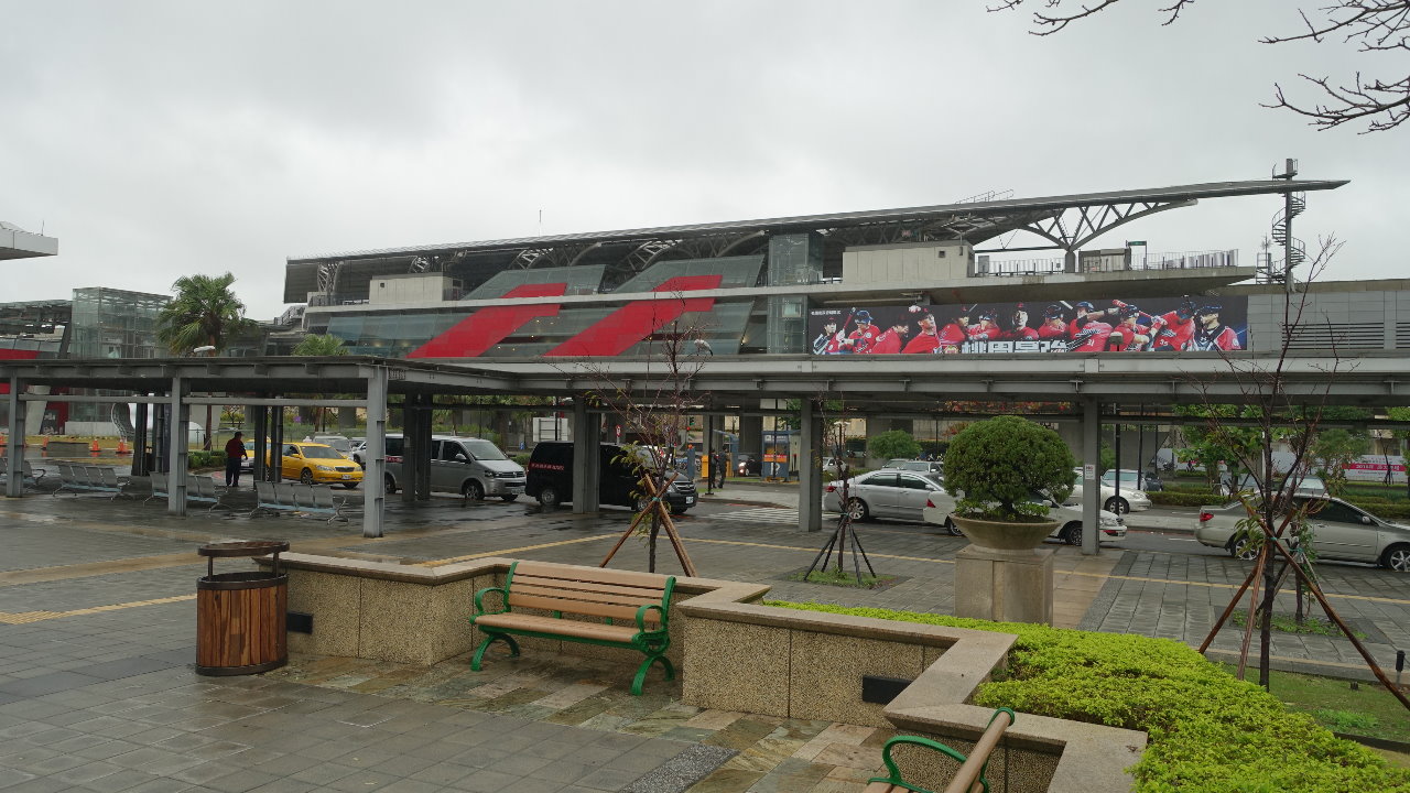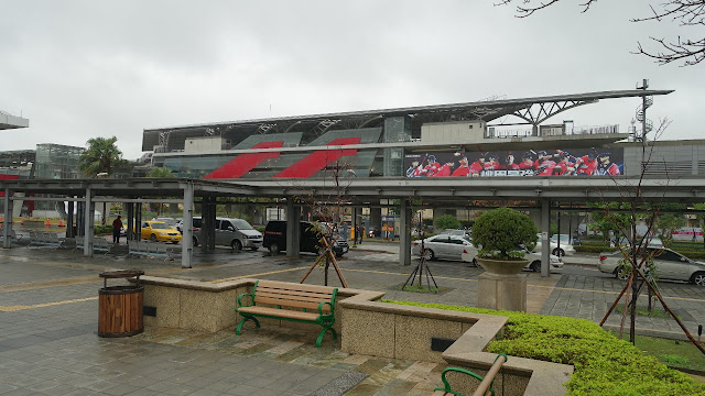 機場捷運「高鐵桃園站」,主體建築都完成了,不過當時還沒通車。上面的照片是Lamigo桃猿隊,主場就在附近;當時大師兄還在,不知道現在會不會已經把他的影像貼掉。 |